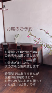 「いつカフェ開いてますか?」「席は予約できますか?」「今日はマフィン何がありますか?」「マフィンは予約できますか?」等々のお問合せは、説明から始まり、やり取りにも時間がかかるため、出来るだけご遠慮いただければ助かります。
